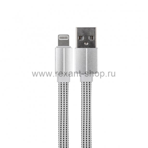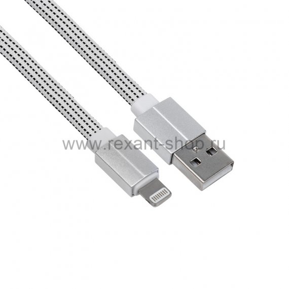 USB кабель для iPhone 5/6/7/8/X моделей, белый текстиль, 1 метр (плоский шнур) REXANT