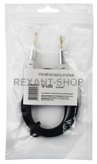 Купить по низким ценам Rexant 18-4000 Описание Rexant 18-4000 Плоский AUX кабель с джеком 3,5 миллиметра предназначен для прослушивания музыки в автомобиле с мобильного телефона. Изделие можно использовать также для MP3 плеера и для любого персонального компьютера, где имеется разъем на 3,5 миллиметра. Подходит для работы с самым широким спектром устройств. Длинна кабеля 1 метр. Кабель сделан по технологии slim, что позволяет просовывать его в узкие щели, например, когда разъем AUX расположен в бардачке автомобиля или когда вы хотите положить телефон, соединенный AUX кабелем, в закрывающийся отсек подлокотника. Цвет кабеля черный.