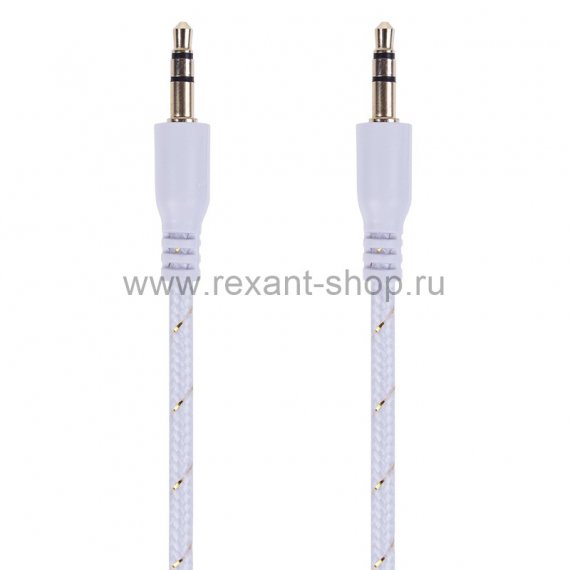 Аудиокабель AUX 3.5 мм в тканевой оплетке 1 м белый REXANT
