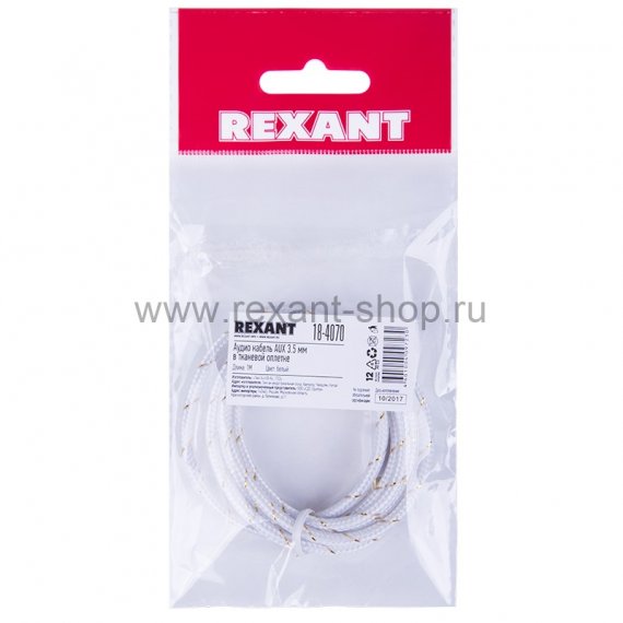 Rexant Аудиокабель AUX 3.5 мм в тканевой оплетке 1 м, 18-4070 Rexant 18-4070