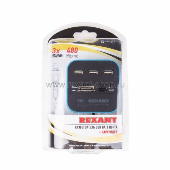 Rexant Разветвитель USB на 3 порта + картридер 18-4121