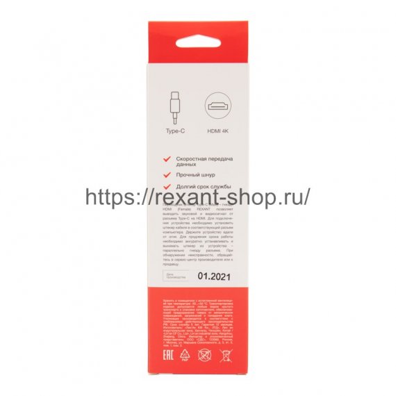 Купить по низким ценам Rexant 18-4150 Описание Rexant 18-4150 Переходник штекер Type-C (Male) - гнездо HDMI (Female) REXANT позволяет выводить звуковой и видеосигнал от разъема Type-C на HDMI.