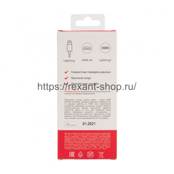 Переходник Lightning (Male) - HDMI (Female) REXANT