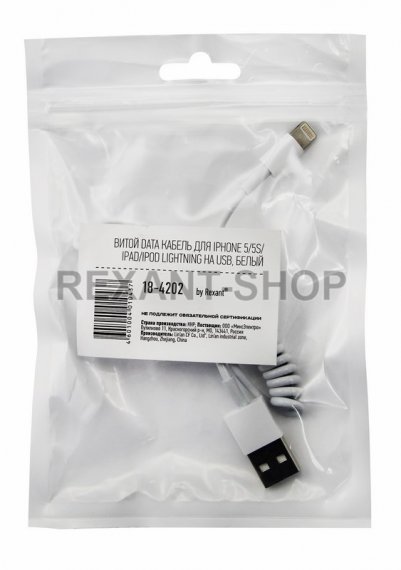 Купить по низким ценам Rexant 18-4202 Описание Rexant 18-4202 Витой lightning кабель представляет собой кабель разъемами USB с одной стороны и разъемом Lightning с другой стороны, выполненный в виде спирали и предназначенный для использования с iPhone, iPod и iPad, оборудованных соответствующим разъемом. Длина его составляет от 10 см в обычном состоянии и до 1 метра - в растянутом, а качество не сможет вызвать ни малейших нареканий. Выполненный только из качественных компонентов, он украсит ваш рабочий стол и сделает процесс зарядки или синхронизации ваших гаджетов более простым. Цвет белый.