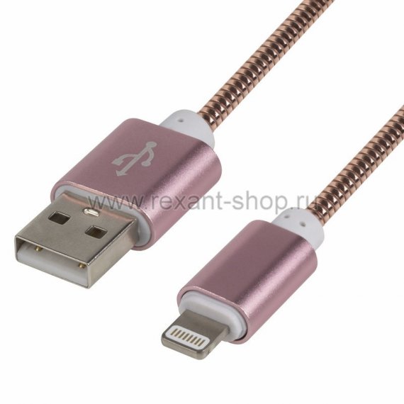 USB кабель для iPhone 5/6/7 моделей, шнур в металлической оплетке розовое золото