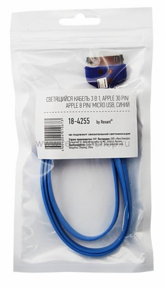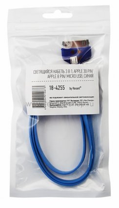 Купить по низким ценам Rexant 18-4255 Описание Rexant 18-4255 Светящийся кабель REXANT предназначен для зарядки изделий фирмы Apple, а так же для зарядки смартфонов и телефонов, оборудованных разъемом Micro USB. Провода кабеля выполнены в форм факторе slim, благодаря этому провод очень тонкий и с легкостью проходит в труднодоступных местах. Уникальный дизайн разъемов со светящимися смайлами не оставит вас равнодушными. Цвет кабеля-синий