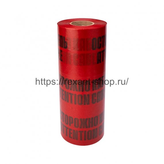 Лента сигнальная «Осторожно кабель» 450 мм х 100 м REXANT, цвет красный/черный