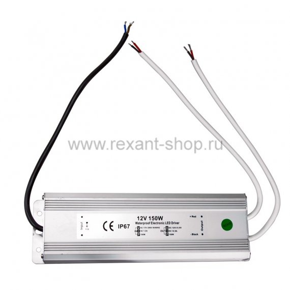 Источник питания 110-220 V AC/12 V DC 12,5 А 150 W с проводами влагозащищенный (IP67)
