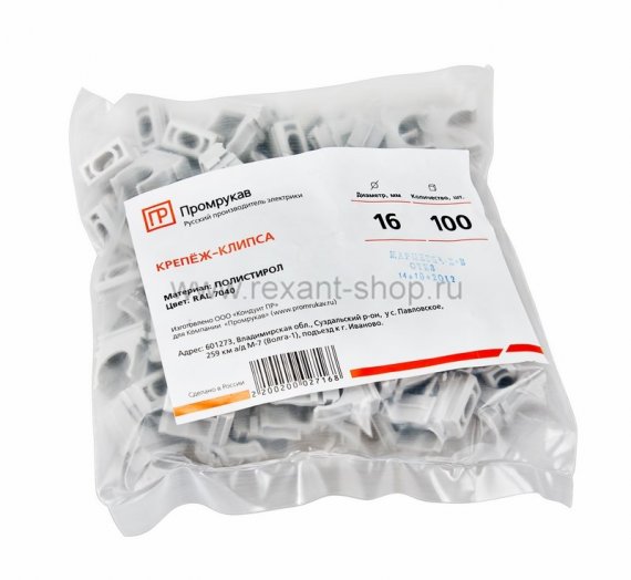 Крепёж-клипса для труб д.16 мм REXANT "ПС" 100 шт/уп (2000 шт/кор)