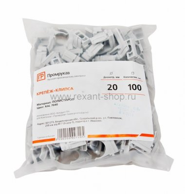 Крепёж-клипса для труб д.20 мм REXANT "ПС" 100 шт/уп (1500 шт/кор)
