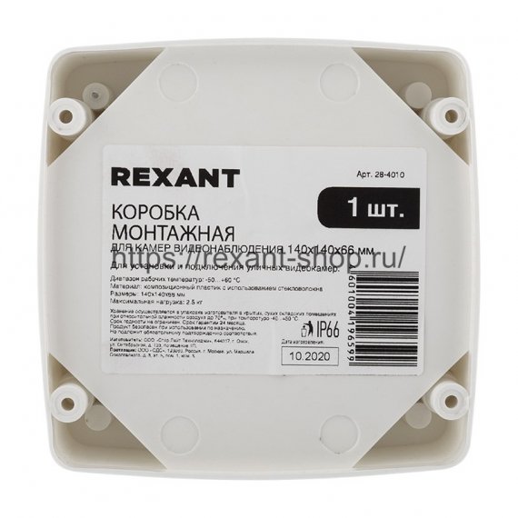 Rexant Коробка монтажная для камер видеонаблюдения 140х140х66 мм, 28-4010
