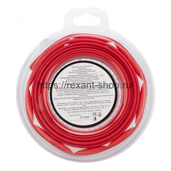Трубка термоусаживаемая 5,0/2,5 мм красная, ролик 2,44 м REXANT