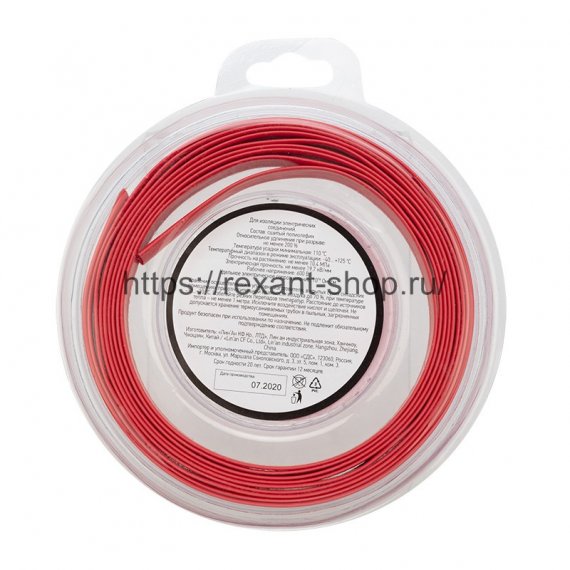Трубка термоусаживаемая 8,0/4,0 мм красная, ролик 2,44 м REXANT