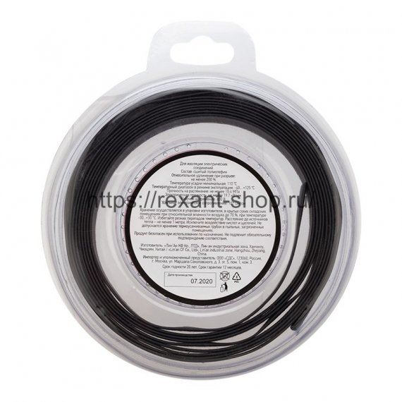 Трубка термоусаживаемая 8,0/4,0 мм черная, ролик 2,44 м REXANT