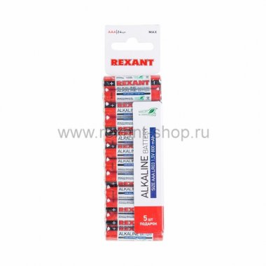 Алкалиновые батарейки AAA/LR03 REXANT - в экономичной упаковке 24 штуки.
