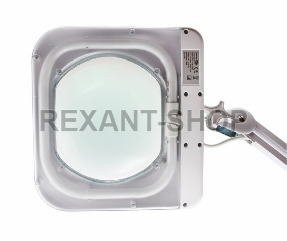 Лупа на струбцине квадратная настольная 5Х с подсветкой с крышкой, белая  REXANT   предназначена для визуального увеличения различных мелких предметов или их фрагментов. Она используется в косметологии, при выполнении ювелирных и радиомонтажных работ, при ремонте часов, в биологии и медицине, для организации труда людей со слабым зрением, а также для других работ, где требуется дополнительное увеличение и подсветка рабочего поля. Такая оптическая система состоит из линзы, удобного пантографического механизма и бестеневой подсветки.