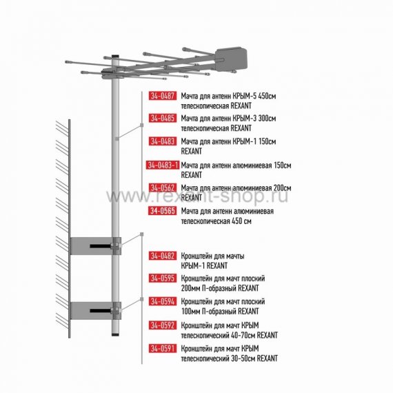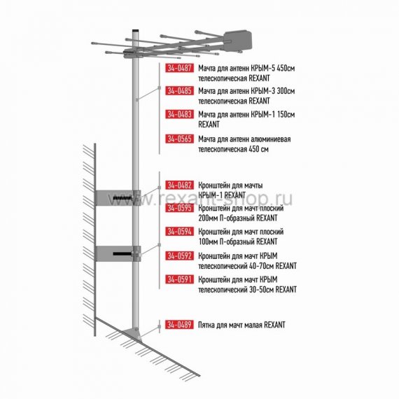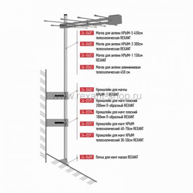Rexant Мачта для антенн алюминиевая 450см телескопическая 34-0565