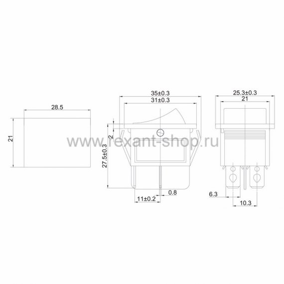 Выключатель клавишный 250V 16А (4с) ON-OFF красный с подсветкой (RWB-502, SC-767, IRS-201-1) предназначен для коммутации электрических цепей переменного тока напряжением до 250В. Клавишные (Рокерные) выключатели применяются в качестве комплектующих изделий различного электрооборудования (в сетевых фильтрах и удлинителях, аудио-оборудовании, блоках питания, электроустановках на различных производствах, автомобилях, и многих других местах). Такой клавишный переключатель имеет два положения. Принцип действия основан на перемещении клавиши в одну из позиций. Для переключения в нужное положение требуется приложить некоторые усилия на клавишу. Монтаж осуществляется без применения винтов на плоских панелях толщиной от 0.8мм до 3мм. Подключение контактов осуществляется плоской клеммой 6.6мм, либо с помощью пайки.