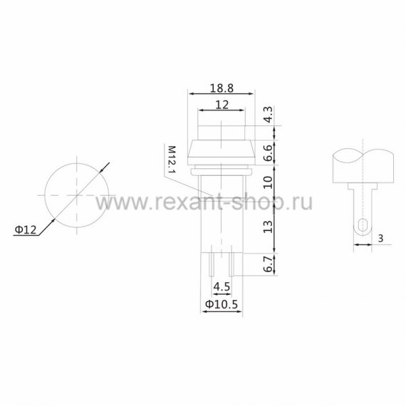 Rexant Выключатель-кнопка 250V 1А (2с) 36-3030-1