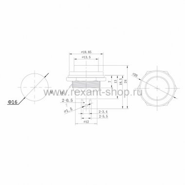 Выключатель-кнопка металл 220V 2А (2с) (ON)-OFF ?16.2 зеленая (RWD-306) REXANT Индивидуальная упаковка 1 шт