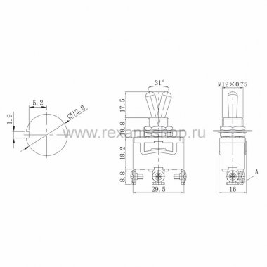 Тумблер 250V 15А (3c) ON-OFF-ON однополюсный (KN-103) предназначен для коммутации электрических цепей переменного тока напряжением до 250В. Такая разновидность переключателей применяется на лицевых панелях в качестве комплектующих изделий различного электрооборудования (в измерительных приборах, блоках питания, электроустановках на различных производствах, легковых и грузовых автомобилях, поездах и многих других местах). Отличительной особенностью тумблера является перекидной переключатель, принцип действия которого основан на его перемещении в одну из позиций. Для переключения в нужное положение требуется приложить некоторые усилия. Монтаж осуществляется без применения винтов на плоских панелях толщиной от 0.8мм до 4мм. Подключение контактов осуществляется с помощью винтов.