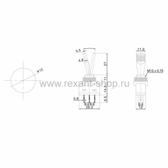 Rexant Тумблер 12V 20А (3c) 36-4370-1