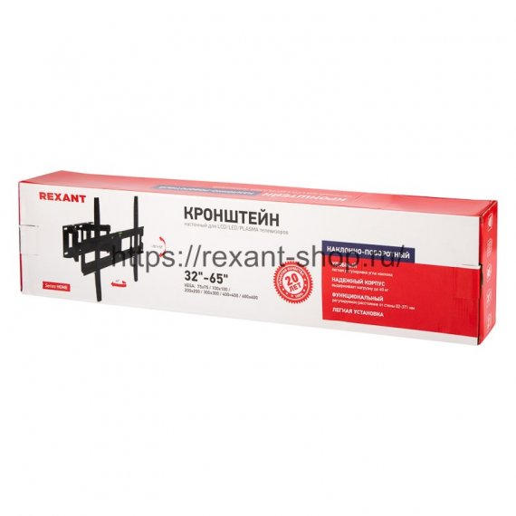 Кронштейн на стену для телевизора, диагональю: 32"-65" дюймов, наклонно-поворотный с двойным коленом REXANT серия HOME