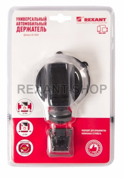 Автомобильный держатель REXANT C605 поворотный 360 компакт 40-60 мм