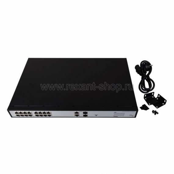 Rexant Коммутатор PoE 16 + 2 COMBO, 15,4 Вт на порт, с грозозащитой 45-0516