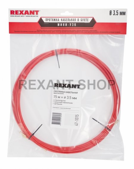 Купить по низким ценам Rexant 47-1015 Описание Rexant 47-1015 Облегчает протяжку кабеля в стояках и трубах межэтажных конструкций к которым нет открытого доступа. Снижает трение и облегчает протяжку прутка в канале. Устройство снабжено стеклоплаcтиковым токонепроводящим прутком с защитной оболочкой из износостойкого материала (полиэтилена низкого давления высокой плотности).