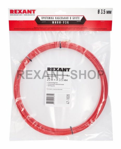 Купить по низким ценам Rexant 47-1020 Описание Rexant 47-1020 Облегчает протяжку кабеля в стояках и трубах межэтажных конструкций к которым нет открытого доступа. Снижает трение и облегчает протяжку прутка в канале. Устройство снабжено стеклоплаcтиковым токонепроводящим прутком с защитной оболочкой из износостойкого материала (полиэтилена низкого давления высокой плотности).
