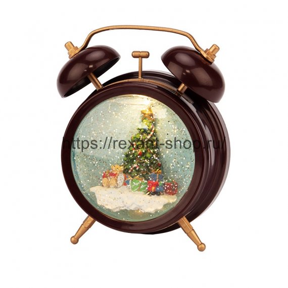 Декоративный светильник «Часы» выполнен в виде классического будильника, у которого вместо циферблата установлена прозрачная колба со специальной жидкостью. Внутри находится яркая композиция из новогодней елки, окруженной подарками. 2 диода, излучающих теплый белый свет, создают эффектную подсветку, которая может использоваться во время ночного сна. Золотистое конфетти имитирует зимний снегопад и заставляет подолгу наблюдать за причудливым танцем сверкающих частиц. Светильник питается от 3 батареек типа АА, что гарантирует полную безопасность использования. В комплекте идет USB-кабель.