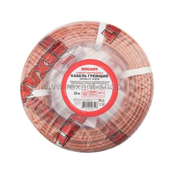 Кабель греющий саморегулирующийся пищевой 10HTM2-CT (10 Вт/1 м), 50 м REXANT