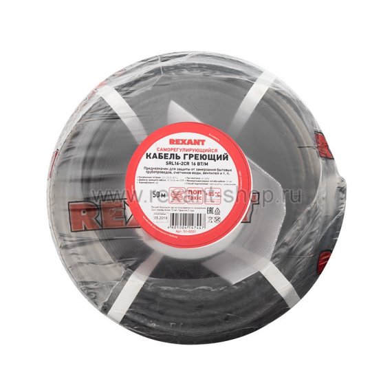 Кабель греющий саморегулирующийся экранированный SRL16-2CR (16 Вт/1 м), 50 м REXANT