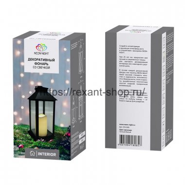 Декоративный фонарь со свечой 14x14x29 см, черный корпус, теплый белый цвет свечения NEON-NIGHT