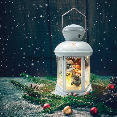 Декоративный фонарь представляет собой корпус белого цвета аутентичного исполнения, за стеклом находятся небольшие елочные шарики, подсвечиваемые диодной мини-гирляндой. 12 диодов излучают теплый белый свет и питаются от 2 батареек типа АА. Металлизированная глянцевая поверхность шариков эффектно играет в световом потоке, отбрасывая яркие блики на окружающие предметы. Светодиоды экономичны, безопасны и долговечны. Фонарь с шариками станет великолепным украшением праздничного и повседневного интерьера.