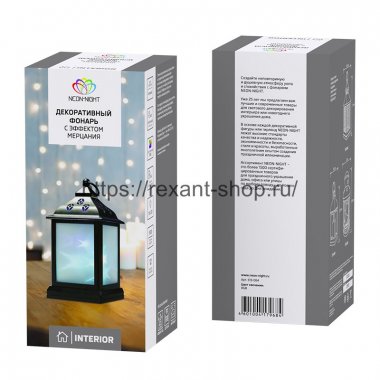 Декоративный фонарь 11х11х22,5 см, черный корпус, цвет свечения RGB с эффектом мерцания NEON-NIGHT