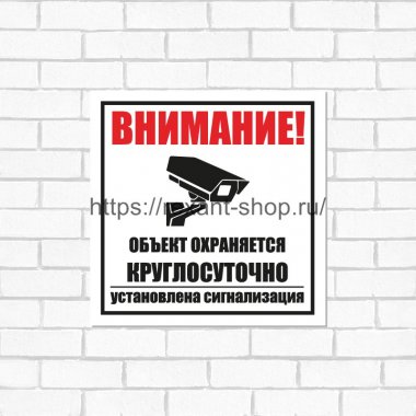 Знак информационный (табличка на ПВХ подложке) «Внимание, обьект охраняется круглосуточно» предназначен для размещения на объектах, находящихся под круглосуточной охраной с установленными видеокамерами, либо используется для профилактики порядка и безопасности на специально отведенных территориях.