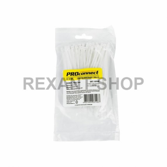 Хомут nylon 100 х 2.5 мм 100 шт белый Proconnect