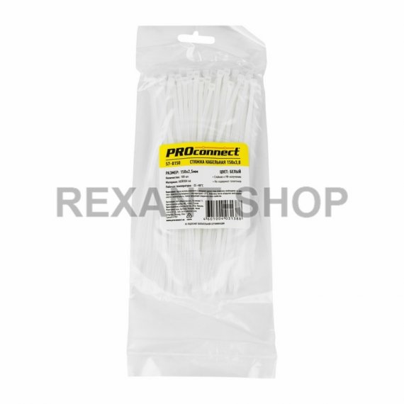 Хомут nylon 150 х 3.0 мм 100 шт белый Proconnect