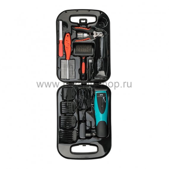 Комплектация: машинка, 4 насадки-гребня (3 мм, 6 мм, 9 мм, 12 мм), защитный кожух для лезвия, ножницы для стрижки когтей животных, щетка для удаления колтунов, пилка для когтей, двусторонний гребень, масло смазочное, щеточка для очистки лезвий, кейс, диск обучающий, гарантия, инструкция
