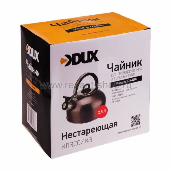 Купить по низким ценам Rexant 60-0702-2 Описание Rexant 60-0702-2 Чайник электрический DX-4DС объемом 2,5 литра из пищевой нержавеющей стали марки SS410.Цвет изделия - "ГРАФИТ". Применение: для всех видов газовых и электрических плит, кроме индукционных.