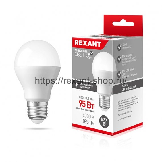 Rexant Лампа светодиодная Груша A60 11,5 Вт E27 1093 лм 4000 K, 604-004