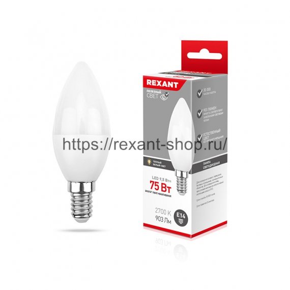 Rexant Лампа светодиодная Свеча (CN) 9,5 Вт E14 903 лм 2700 K, 604-023