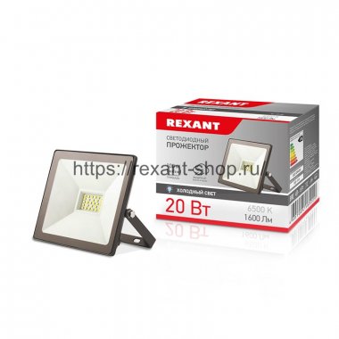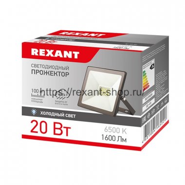 Rexant Прожектор светодиодный 20 Вт 200–260В IP65 1600 лм 6500 K, 605-002