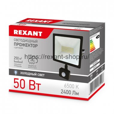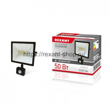 Прожектор светодиодный с датчиком движения 50 Вт 200–260В IP44 4000 лм 6500 K холодный свет REXANT