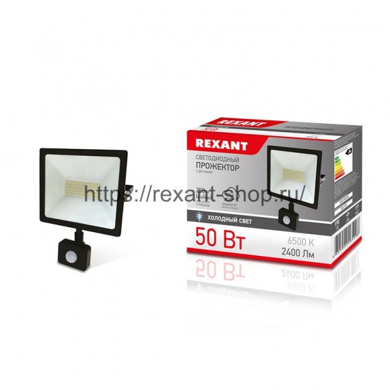 Прожектор светодиодный с датчиком движения 50 Вт 200–240 В IP44 4000 лм 6500 K холодный свет REXANT