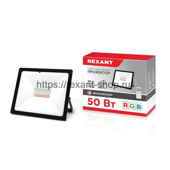 Прожектор светодиодный REXANT с пультом дистанционного управления 50 Вт, цвет свечения мультиколор (RGB)