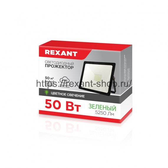 Прожектор светодиодный REXANT 50 Вт, цвет свечения зеленый