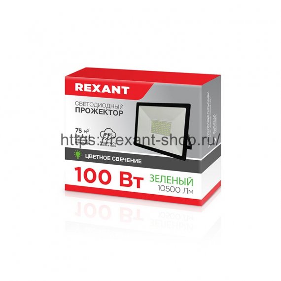 Прожектор светодиодный REXANT 100 Вт, цвет свечения зеленый